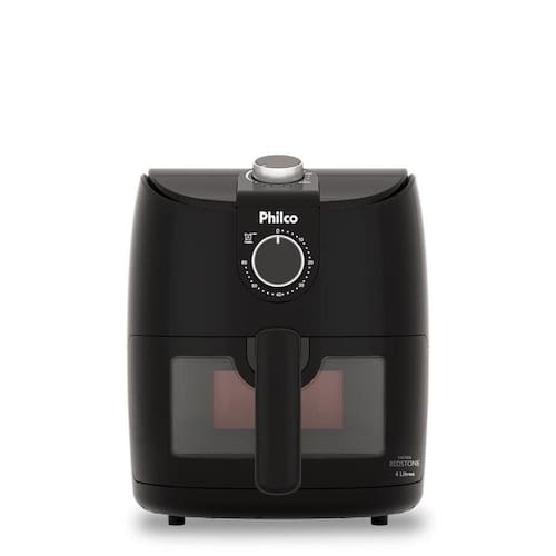Air Fryer Philco com 4L de capacidade, 1500W de potência, revestimento Redstone, timer de 60 minutos, controle de temperatura ajustável (80°C a 200°C), cesto removível, base antiderrapante e sistema de proteção contra sobreaquecimento.Porta-fio
