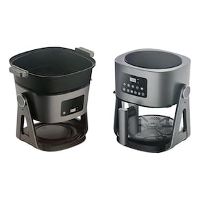 A Air Fryer Reverse 2 em 1 e a solucao pratica para quem quer fritar, grelhar e cozinhar com versatilidade em um unico aparelho. Com capacidade de 5 litros e potencia de 1500W, funciona tanto como fritadeira quanto como panela, oferecendo preparo rapido e uniforme. O cesto em vidro borossilicato com visao 360deg permite acompanhar o preparo dos alimentos em tempo real, enquanto a funcao rotativa possibilita o uso como grelha, ampliando as possibilidades de receitas. Ideal para o dia a dia, combina desempenho, praticidade e design moderno na cor cinza.