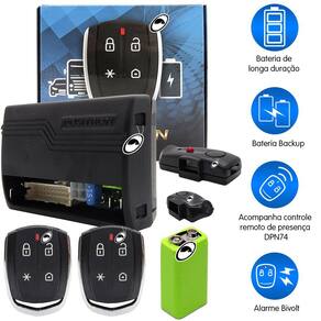 - Acompanha controle remoto de presença: ao afastar o controle do veículo, o motor de partida ou bomba de combustível é bloqueado automaticamente. Relé de bloqueio integrado;