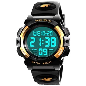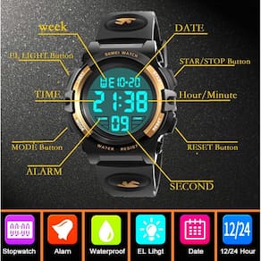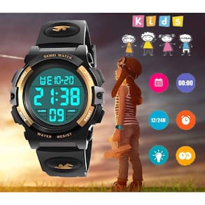 Cronômetro LED digital multifuncional infantil, esportivo, impermeável, data de alarme para meninos e meninas, crianças de 5 a 12 anos, melhores presentes (dourado-preto)