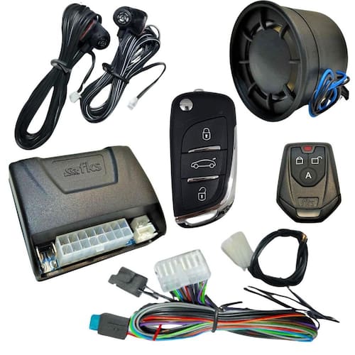 O alarme automotivo FKS FK902 com chave é o modelo perfeito para a proteção do seu veículo, é um dos alarmes mais procurados por consumidores por causa do seu ótimo desempenho e qualidade, que veio para poder facilitar e deixar sua vida mais confortável. ESPECIFICAÇÕES TÉCNICAS: Chave não acompanha lâmina Bloqueio do motor Desliga o rádio com saída positiva Comando de travas negativo Travamento automático de portas após a ignição ser ligada 2 saídas auxiliares Sistema de ultrasom com ajuste de sensibilidade Funções que são programáveis CONTEÚDO DA EMBALAGEM: Módulo Central x1 Sirene Dedicada x1 Chicotes Para Instalação Chave x1 não acompanha lâmina Controle CR941 x1 Argolas x2 Sensores De Ultrassom x2 Manual De Instruções x1