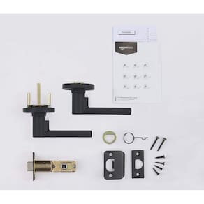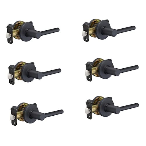 Amazon Basics Maçaneta de porta contemporânea Madison - Passage - Preto fosco, pacote com 6 - Fácil instalação com chave de fenda Phillips padrão - Alavanca totalmente reversível; pode ser instalada em portas destros e canhotos - Serve para todas as portas de 3,5 cm a 4,5 cm de espessura - Trava ajustável de 6 vias para caber em qualquer encosto de 6 ou 6 cm - Segurança certificada de grau 3 pela ANSI/BHMA
