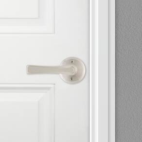 Kwikset Maçaneta de porta falsa Katella, alavanca de um lado para armários, portas duplas francesas e despensa, alavanca interna reversível de empurrar/puxar de níquel acetinado com proteção Microban