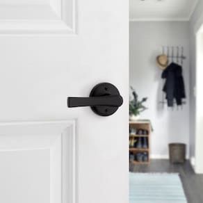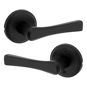 Kwikset Maçaneta de porta de passagem interna Katella, alavanca para portas de armário e corredor, alavanca reversível sem trava, preto fosco, com proteção Microban