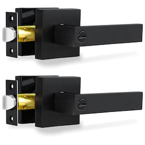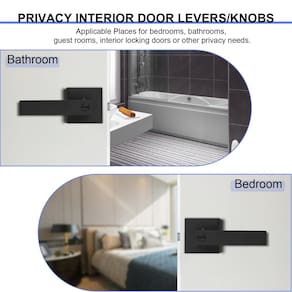 RAZCC Maçaneta de porta interior de privacidade, maçanetas de porta pretas foscas resistentes, maçanetas quadradas para quarto e banheiro, maçanetas de fechadura sem chave para portas do lado direito e esquerdo - MATERIAL PREMIUM: Esta maçaneta de porta de privacidade de estilo moderno é resistente e estável, feita de liga de zinco resistente e metal, acabamento preto fosco - ESPECIFICAÇÃO: Adapta-se à espessura padrão da porta: 1-3/20.2 cm a 1-3/10.2 cm (35 mm-45 mm) e trava ajustável 2-3/20.2 cm ou 2-3/10.2 cm (60 mm ou 70 mm), a placa de trava não é removível. Maçaneta preta vem com uma placa quadrada, permite que você substitua a sua existente - FUNÇÃO DE PRIVACIDADE: Maçanetas interiores sem chave com botão de virar (travar e desbloquear) e exterior com botão de liberação de emergência. Quando você está trancado dentro, o exterior pode destrancar a porta com uma moeda ou chave de fenda, nenhuma chave é necessária - Ampla aplicação: Esta maçaneta interna é reversível, o que significa que pode ser usada tanto no lado esquerdo quanto no lado direito. Projetado para completar portas interiores de estilo convencional e moderno para banheiros, quartos, escritórios, quartos ou outros lugares, privacidade necessária - INSTALAÇÃO FÁCIL: O cadeado da maçaneta da porta tem instruções de instalação e componentes necessários no pacote, ajudará você a instalá-lo melhor, instalação em apenas alguns minutos para economizar seu tempo