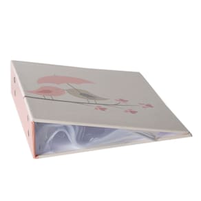 Feito com capa de papelão, folhas de polipropileno e miolo colado, suporta 4 fotos por folha.