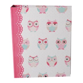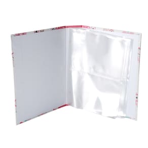 Feito com capa de papelão, folhas de polipropileno e miolo colado, suporta 4 fotos por folha.