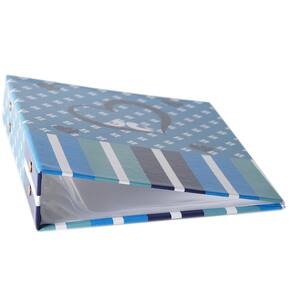Feito com capa de papelão, folhas de polipropileno e suporta 4 fotos por folha.