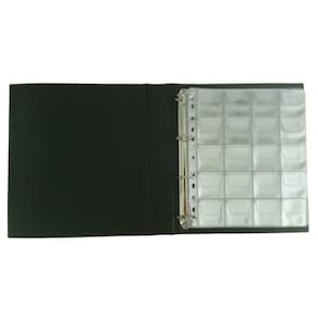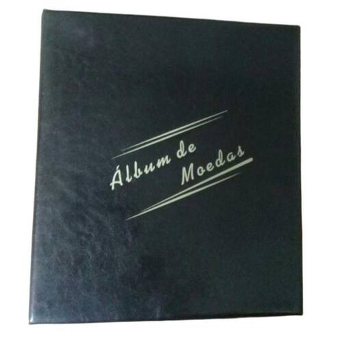 Álbum Acolchoado Grande Preto Para 200 Moedas 4 ArgolasBelíssimo álbum com capa acolchoada para organizar e conservar suas moedas.Descrição Técnica:Dimensões: 31 cm de comprimento x 28 cm de largura x 5 cm de altura com 4 argolasCapacidade: 200 moedas Capa: em couro sintético acolchoado Cor: pretoMarca: Loja do colecionadorFolhas : 10 folhas de PVC com 20 bolsas de 5cm x 5cm com aba. Cabe coin holder Marca: Loja do colecionador