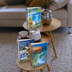 Álbum de fotos para guardar e proteger suas recordações. Os albuns de fotos variados possuiem capas impressos em couche e acabamento brilho . Produto de qualidade e durabilidade, fabricada com os melhores materias do mercado. O sistema de ferragem permite a inclusão de mais folhas para ampliar o numerode fotos. Tem capacidade para até 300 fotos 10x15 4 fotos por pagina