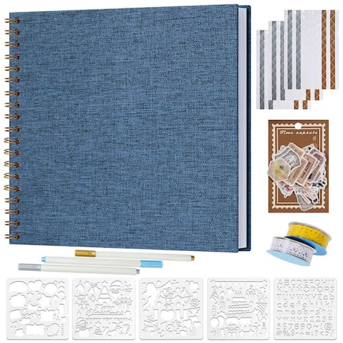 Compartilhar memórias com entes queridos, capturar todos os detalhes desses momentos especiais e expressar nossos pensamentos e sentimentos por meio de palavras sinceras são algumas das coisas mais preciosas da vida. Essas ações nos ajudam a construir conexões mais fortes e garantir que nosso amor seja realmente sentido. Criar um álbum de recortes DIY pode ser um presente incrível e personalizado que mostra o quanto você se importa. Dimensões: Capa: Comprimento 12,2 x Largura 12,2 (polegadas) Página: 80 páginas/40 folhas. A embalagem inclui: 1 álbum de recortes. 2 fitas de renda. 3 canetas metálicas. 3 adesivos de canto para fotos. 5 modelos de texto. 40 adesivos de flores vintage. - Capa de linho premium: o álbum de recortes apresenta uma capa de linho de alta qualidade que não é apenas elegante, mas também de longa duração. - Páginas sem ácido: as páginas internas do álbum de recortes são compostas de papel kraft branco sem ácido, sem PVC, oferecendo proteção estendida para suas criações DIY. - Acessórios ricos: o kit de scrapbook é adequado para iniciantes e inclui 1 álbum de recortes, 40 adesivos de flores vintage, 3 adesivos de canto de foto, 2 fitas de renda, 3 canetas metálicas e 5 x modelos de texto. - Presente ideal: não importa se é Natal, Dia das Mães, Dia dos Pais, casamento ou chá de bebê, nosso álbum de recortes serve como uma excelente opção de presente para seus entes queridos, incluindo familiares, amigos ou parceiros. - Livro de recortes faça você mesmo: sob medida para os amantes de álbuns, os álbuns de recortes de 30 x 30 cm vêm com 40 folhas/80 páginas, oferecendo uma maneira excepcional de documentar memórias especiais, organizar fotos e lembranças exclusivas da moda.