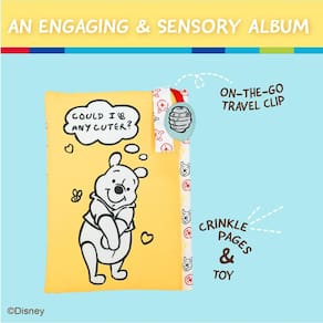 Álbum de fotos do Ursinho Pooh da Disney com páginas suaves e sons enrugados para bebês e crianças pequenas – comporta fotos 10 x 15 cm e alça em movimento para carrinho, assento de carro ou berço - Adorável design Winnie the Pooh: este álbum de fotos apresenta um design encantador do Ursinho Pooh da Disney, perfeito para jovens fãs e amantes da Disney. - Páginas macias com sons rugosos: as páginas suaves do álbum apresentam sons enrugados, adicionando um elemento sensorial divertido à hora de brincar. Mantém o bebê envolvido e entretido. - Suporta fotos de 10 x 15 cm: o álbum contém três fotos de 10 x 15 cm, permitindo que você mostre suas memórias favoritas. Ajuda o bebê a reconhecer rostos familiares de seus entes queridos. - Alça para viagens: a alça em movimento se fixa facilmente a um carrinho, assento de carro ou berço, tornando-a conveniente para viagens e uso em casa. - Ideal para bebês e crianças: este álbum de fotos foi projetado para bebês e crianças, proporcionando a eles uma maneira divertida e envolvente de explorar fotos e reconhecer rostos familiares. Presente perfeito para chás de bebê e novas boas-vindas para bebês.