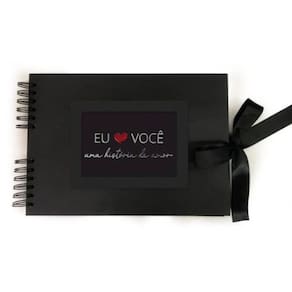 Capa dura, miolo com 30 folhas pretas 180 g/m2 (encorpadas), folhas protetoras intercaladas, formato 21,8 cm × 23,5 cm, encadernação em wire-o. Acompanha capa protetora transparente. Embalagem em caixa de papel kraft e tampa em acetato transparente. Medidas: 30cm x 27cm x 3cm, fechamento com tag adesiva com mensagem.