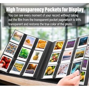 - Bolsos de alta transparência para exibição: a página interna do álbum é feita de plástico de alta qualidade, que é 99% transparente e restaura a cor real da foto. Você pode ver cada momento do seu registro sem tirar o filme da página de bolso transparente.