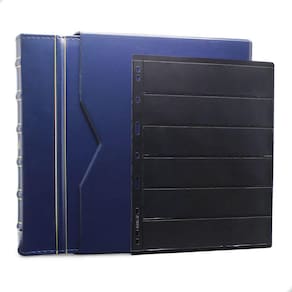 O Álbum de Luxo Azul 10 Folhas para 120 Selos 3BZN P é um kit de fichário que acompanha folhas para selos em acetato preto tamanho 28x21cm, a transparência da folha é alta e cristalina, de forma que é possível ver sua cédula sem interferências, dessa forma é possível apreciar sua coleção da melhor forma. Esse kit de folhas é feito em um material resistente sendo o principal organizador de cédulas colecionáveis para colecionador.