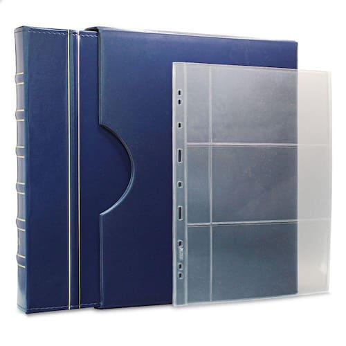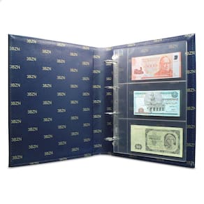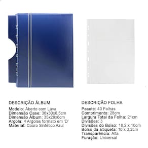 O Álbum de Luxo Azul 40 Folhas para 120 Cédulas 3BZN G é um kit de fichário que acompanha folhas para cédulas em acetato tamanho 32x24cm, a transparência da folha é alta e cristalina, de forma que é possível ver sua cédula sem interferências, e de ambos os lados: frente e verso, dessa forma é possível apreciar sua coleção da melhor forma. Esse kit de folhas é feito em um material resistente sendo o principal organizador de cédulas colecionáveis para colecionador.