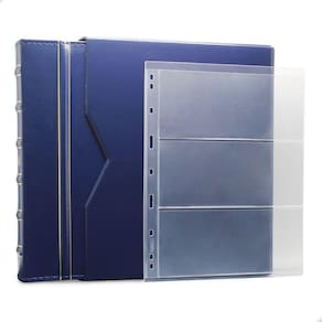 O Álbum de Luxo Azul 40 Folhas para 120 Cédulas 3BZN P é um kit de fichário que acompanha folhas para cédulas em acetato tamanho 28x21cm, a transparência da folha é alta e cristalina, de forma que é possível ver sua cédula sem interferências, e de ambos os lados: frente e verso, dessa forma é possível apreciar sua coleção da melhor forma. Esse kit de folhas é feito em um material resistente sendo o principal organizador de cédulas colecionáveis para colecionador.