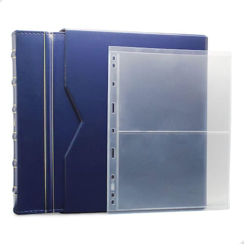 O Álbum de Luxo Azul 50 Folhas para 100 Cédulas 3BZN P é um kit de fichário que acompanha folhas para cédulas em acetato tamanho 28x21cm, a transparência da folha é alta e cristalina, de forma que é possível ver sua cédula sem interferências, e de ambos os lados: frente e verso, dessa forma é possível apreciar sua coleção da melhor forma. Esse kit de folhas é feito em um material resistente sendo o principal organizador de cédulas colecionáveis para colecionador.
