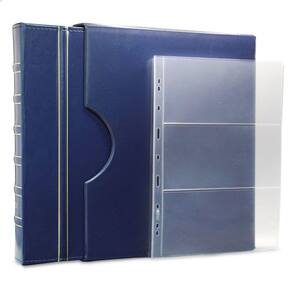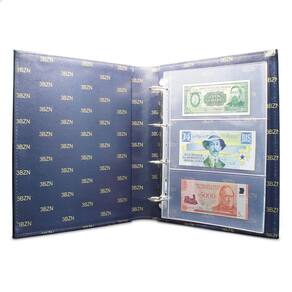 O Álbum de Luxo Azul 50 Folhas para 150 Cédulas 3BZN G é um kit de fichário que acompanha folhas para cédulas em acetato tamanho 32x24cm, a transparência da folha é alta e cristalina, de forma que é possível ver sua cédula sem interferências, e de ambos os lados: frente e verso, dessa forma é possível apreciar sua coleção da melhor forma. Esse kit de folhas é feito em um material resistente sendo o principal organizador de cédulas colecionáveis para colecionador.