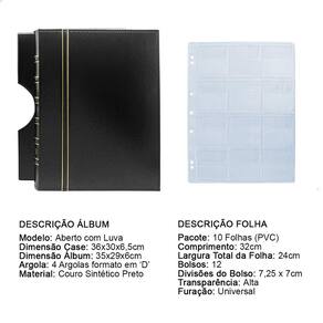 O Álbum de Luxo Preto 10 Folhas para 120 Moedas 3BZN G é um kit de fichário que acompanha folhas para Moedas tamanho 32x24cm, a transparência da folha é alta e cristalina, de forma que é possível ver sua moeda sem interferências, e de ambos os lados: frente e verso, dessa forma é possível apreciar sua coleção da melhor forma. Esse kit de folhas é feito em um material resistente sendo o principal organizador de moedas colecionáveis.