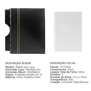 O Álbum de Luxo Preto 10 Folhas PP para 30 Cédulas 3BZN G é um kit de fichário que acompanha Folhas PP. Seu acabamento é transparente, podendo visualizar as cédulas frente e verso. Essa folha é ideal para você criar aquele mostruário que sempre desejou com sua coleção de cédulas antigas, nacionais ou estrangeras e finalmente poder mostrar sua coleção toda organizada para sua família e amigos.
