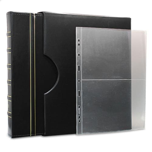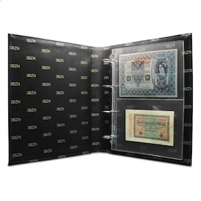 O Álbum de Luxo Preto 20 Folhas para 40 Cédulas 3BZN G é um kit de fichário que acompanha folhas para cédulas em acetato tamanho 32x24cm, a transparência da folha é alta e cristalina, de forma que é possível ver sua cédula sem interferências, e de ambos os lados: frente e verso, dessa forma é possível apreciar sua coleção da melhor forma. Esse kit de folhas é feito em um material resistente sendo o principal organizador de cédulas colecionáveis para colecionador.