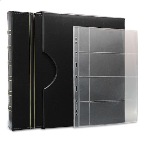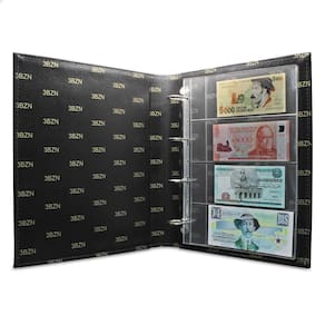 O Álbum de Luxo Preto 50 Folhas para 200 Cédulas 3BZN G é um kit de fichário que acompanha folhas para cédulas em acetato tamanho 32x24cm, a transparência da folha é alta e cristalina, de forma que é possível ver sua cédula sem interferências, e de ambos os lados: frente e verso, dessa forma é possível apreciar sua coleção da melhor forma. Esse kit de folhas é feito em um material resistente sendo o principal organizador de cédulas colecionáveis para colecionador.