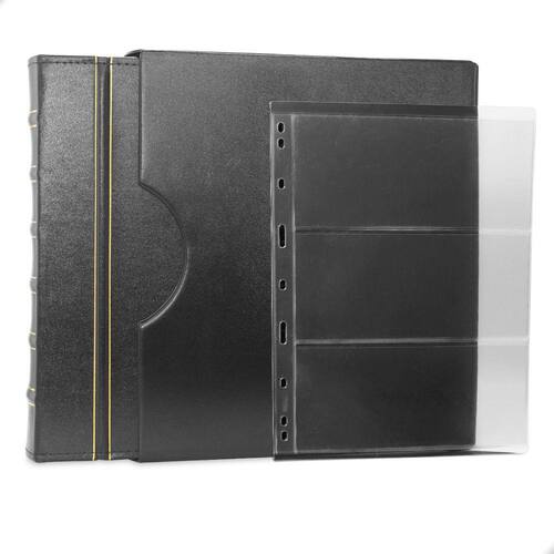 Álbum Fichário Luxo Preto Gigante 30 Folhas para Cédulas 3 Espaços 28x21