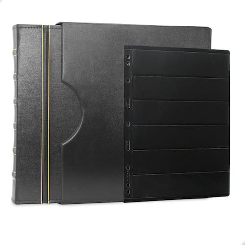 Álbum Fichário Luxo Preto Gigante 30 Folhas para Selos 6 Espaços 28x21