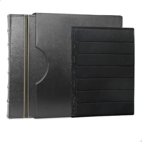Álbum Fichário Luxo Preto Gigante 40 Folhas para Selos 7 Espaços 28x21