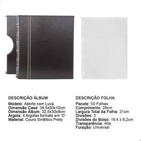 FURAÇÃO UNIVERSAL: A Folha de Acetato para cédulas possui furação universal, ou seja, pode ser utilizada em álbuns fichários de 2, 3 e 4 grampos. Porém ATENÇÃO, certifique-se que a medida do álbum corresponde as especificações (medidas) da folha.