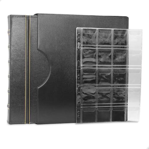 O Álbum Fichário Luxo Preto Gigante 10 Folhas de 20 Bolsos 28x21 , é um kit de fichário que acompanha folhas para cédulas em acetato tamanho 28x21cm, a transparência da folha é alta e cristalina, de forma que é possível ver sua cédula sem interferências, e de ambos os lados: frente e verso, dessa forma é possível apreciar sua coleção da melhor forma. Esse kit de folhas é feito em um material resistente sendo o principal organizador de cédulas colecionáveis para colecionador.