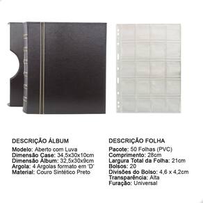 Álbum Fichário Luxo Preto Gigante 50 Folhas de 20 Bolsos 28x21