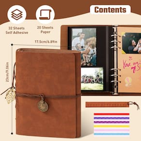 Este álbum de fotos apresenta uma capa de couro PU, que é muito confortável e macia, mas o interior é muito resistente, tornando o álbum mais resistente e resistente à deformação. Também parece mais sofisticado e pode ser armazenado por um longo período de tempo. Cada álbum de fotos de couro PU vem com um fichário de 6 anéis padrão de alta qualidade, permitindo que você mude livremente a posição do papel, tornando-o perfeito para bricolage. Você pode escrever seus pensamentos ao lado de cada foto e registrar belos momentos. O álbum autoadesivo é feito de filme de PVC de alta permeabilidade, que pode tornar a exibição da foto clara, à prova de umidade, antienvelhecimento, manter a cor verdadeira da foto e dar 30 peças de papel gravável de 200 g/m2 como presente, no qual você pode gravar a história da foto. Este será um álbum de fotos comemorativo significativo. - Álbuns de fotos de scrapbook de viagem: Mini álbum de fotos de família 18 x 23 cm, pequeno e fácil de transportar é perfeito para viajar, você pode mudar a posição do papel fotográfico como quiser para gravar belas memórias, é o livro de fotos de memória perfeito. - Kit de álbum de recortes de fotos: o álbum de recortes contém 64 páginas autoadesivas de álbum de fotos e 40 páginas de escrita, que não apenas podem postar fotos de tamanho 3 x 5, 4 x 6, 5 x 7, mas também podem ajudá-lo a gravar as memórias preciosas por trás das fotos. - Álbum de fotos à prova d'água: a capa é feita de material impermeável e resistente à abrasão, que pode prolongar a vida útil do álbum de recortes e proteger as fotos internas e o texto por um longo tempo; estilo vintage, adequado para decoração de estante. - Presente exclusivo do álbum: este álbum de recortes autoadesivo com estilo vintage à prova d'água é o presente perfeito para familiares e amigos, ou você pode usá-lo como seu próprio álbum de viagem, também o tamanho compacto é muito fácil de carregar. - OVESMUSL SUPORTE DA MARCA: Você pode comprar nossos produtos com total confiança! Se você não ama o álbum de recortes autoadesivo devido a quaisquer problemas de qualidade, basta entrar em contato conosco diretamente. Forneceremos uma resposta dentro de 24 horas.