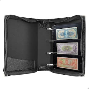O Álbum Fichário 10 Folhas para Selos 3 Espaços 28x21 Cobra XL, é um kit de fichário que acompanha folhas para selos em acetato preto tamanho 28x21cm, a transparência da folha é alta e cristalina, de forma que é possível ver sua cédula sem interferências, dessa forma é possível apreciar sua coleção da melhor forma. Esse kit de folhas é feito em um material resistente sendo o principal organizador de cédulas colecionáveis para colecionador.