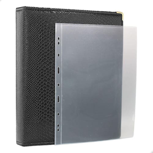 Álbum Fichário 20 Folhas para Cédulas 1 Espaço 32x24 Cobra GF, é um kit de fichário que acompanha folhas para cédulas em acetato tamanho 32x24cm, a transparência da folha é alta e cristalina, de forma que é possível ver sua cédula sem interferências, e de ambos os lados: frente e verso, dessa forma é possível apreciar sua coleção da melhor forma. Esse kit de folhas é feito em um material resistente sendo o principal organizador de cédulas colecionáveis para colecionador.