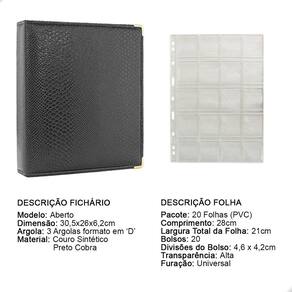 Álbum Fichário 20 Folhas para 400 Moedas 28x21 Cobra P