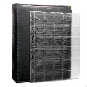 O Álbum Fichário 20 Folhas para 600 Moedas 28x21 Cobra Fosco XL, é um kit de fichário que acompanha folhas para Moedas tamanho 28x21cm, a transparência da folha é alta e cristalina, de forma que é possível ver sua moeda sem interferências, e de ambos os lados: frente e verso, dessa forma é possível apreciar sua coleção da melhor forma. Esse kit de folhas é feito em um material resistente sendo o principal organizador de moedas colecionáveis.