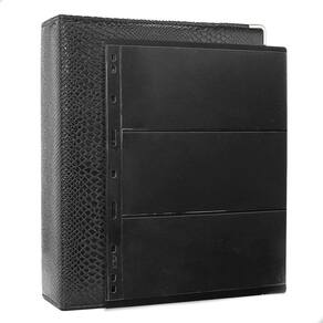 O Álbum Fichário 20 Folhas para Selos 3 Espaços 28x21 Cobra XL, é um kit de fichário que acompanha folhas para selos em acetato preto tamanho 28x21cm, a transparência da folha é alta e cristalina, de forma que é possível ver sua cédula sem interferências, dessa forma é possível apreciar sua coleção da melhor forma. Esse kit de folhas é feito em um material resistente sendo o principal organizador de cédulas colecionáveis para colecionador.