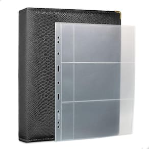 Álbum Fichário 30 Folhas para Cédulas 3 Espaços com Bolso 32x24 Cobra G, é um kit de fichário que acompanha folhas para cédulas em acetato tamanho 32x24cm, a transparência da folha é alta e cristalina, de forma que é possível ver sua cédula sem interferências, e de ambos os lados: frente e verso, dessa forma é possível apreciar sua coleção da melhor forma. Esse kit de folhas é feito em um material resistente sendo o principal organizador de cédulas colecionáveis para colecionador.