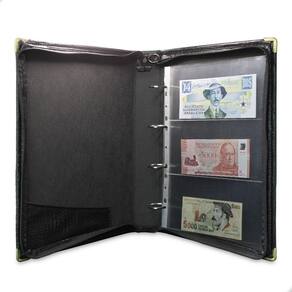 Álbum Fichário 30 Folhas PP para Cédulas 3 Espaços 32x24 Ziper Cobra Fosco GG, é um kit de fichário que acompanha Folhas PP. Seu acabamento é transparente, podendo visualizar as cédulas frente e verso. Essa folha é ideal para você criar aquele mostruário que sempre desejou com sua coleção de cédulas antigas, nacionais ou estrangeras e finalmente poder mostrar sua coleção toda organizada para sua família e amigos.