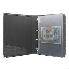 Álbum Fichário 40 Folhas para Cédulas 1 Espaço 32x24 Cobra GF, é um kit de fichário que acompanha folhas para cédulas em acetato tamanho 32x24cm, a transparência da folha é alta e cristalina, de forma que é possível ver sua cédula sem interferências, e de ambos os lados: frente e verso, dessa forma é possível apreciar sua coleção da melhor forma. Esse kit de folhas é feito em um material resistente sendo o principal organizador de cédulas colecionáveis para colecionador.
