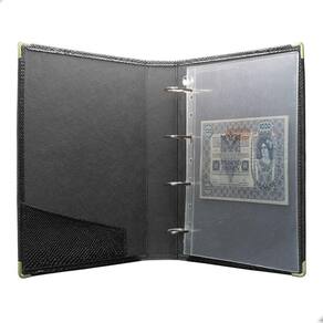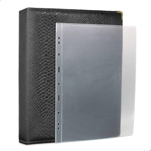 Álbum Fichário 40 Folhas para Cédulas 1 Espaço 32x24 Cobra G, é um kit de fichário que acompanha folhas para cédulas em acetato tamanho 32x24cm, a transparência da folha é alta e cristalina, de forma que é possível ver sua cédula sem interferências, e de ambos os lados: frente e verso, dessa forma é possível apreciar sua coleção da melhor forma. Esse kit de folhas é feito em um material resistente sendo o principal organizador de cédulas colecionáveis para colecionador.