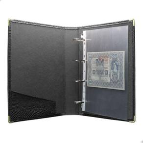 Álbum Fichário 40 Folhas PP para Cédulas 1 Espaço 32x24 Cobra G, é um kit de fichário que acompanha Folhas PP para cédulas em acetato tamanho 32x24cm, a transparência da folha é alta e cristalina, de forma que é possível ver sua cédula sem interferências, e de ambos os lados: frente e verso, dessa forma é possível apreciar sua coleção da melhor forma. Esse kit de folhas é feito em um material resistente sendo o principal organizador de cédulas colecionáveis para colecionador.