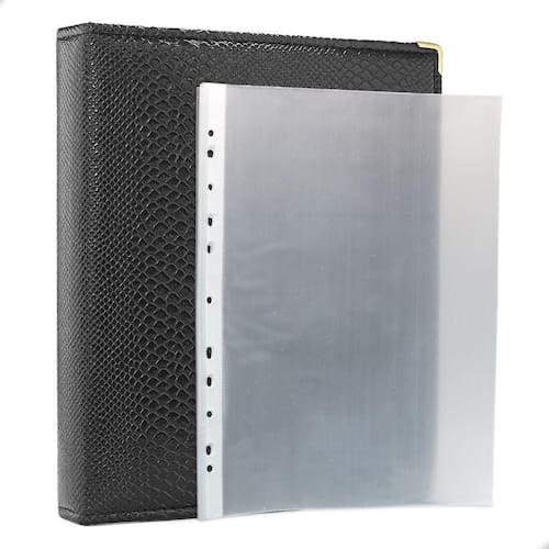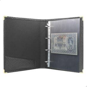 Álbum Fichário 50 Folhas PP para Cédulas 1 Espaço 32x24 Cobra GF, é um kit de fichário que acompanha Folhas PP. Seu acabamento é transparente, podendo visualizar as cédulas frente e verso. Essa folha é ideal para você criar aquele mostruário que sempre desejou com sua coleção de cédulas antigas, nacionais ou estrangeras e finalmente poder mostrar sua coleção toda organizada para sua família e amigos.