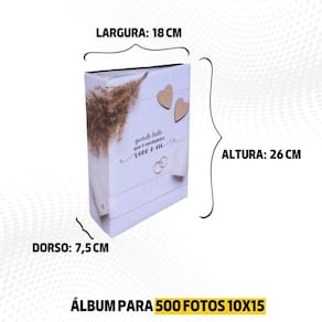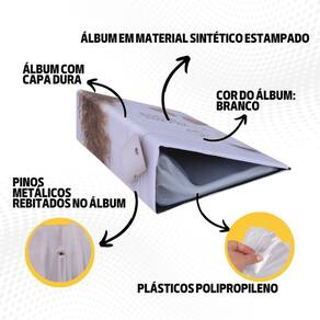 - Álbum com capa dura revestida de material sintético com 125 folhas plásticas. Cada página comporta 2 fotos 10x15 e um memo. Totalizando no álbum 500 fotos 10x15