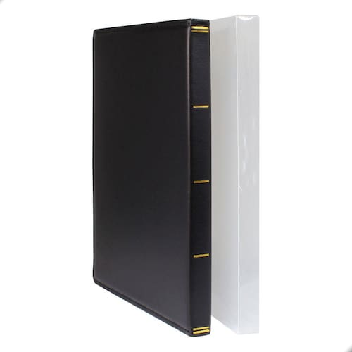 O Álbum para Cédulas 3 Espaços, com dimensões de 28x21 centímetros, é uma escolha refinada para colecionadores. Equipado com 20 folhas de acetato de alta transparência, oferece visibilidade nítida de ambas as faces das cédulas, permitindo a apreciação completa da coleção.