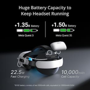 Pulseira de bateria E3 Pro Elite, projetada especificamente para Meta Quest 3/3S. Como um produto oficial Made for Meta, o E3 Pro garante padrões de qualidade e segurança que atendem aos rigorosos requisitos de certificação da Meta. - Oficial feito para certificação Meta: a alça de bateria E3 Pro Elite projetada especificamente para Meta Quest 3/3S. Como um produto oficial Made for Meta, o E3 Pro garante padrões de qualidade e segurança que atendem aos rigorosos requisitos de certificação da Meta. - Design Elite para VR ativo e uso estendido: possui um design leve e simplificado otimizado para sessões ativas de VR. Integrado com o avançado sistema de bateria B100 da BOBOVR, proporcionando melhor distribuição de peso e consumo de energia otimizado. - BOBOVR Sistema de carregamento rápido de troca a quente B100: equipado com o design magnético exclusivo de troca a quente da BOBOVR, o sistema de bateria B100 possui uma capacidade de 10.000 mAh (5000mAh×2). Prolonga a vida útil da bateria em 135% para Quest 3 e 150% para Quest 3S, com saída de carregamento rápido de 22,5 W. A tela inteligente mantém você informado sobre o status de energia em tempo real. Basta conectar uma bateria nova sem remover o fone de ouvido para sessões ininterruptas de realidade virtual. - Integração de áudio aprimorada: possui um conector de áudio integrado de 3,5 mm, oferecendo opções de conectividade de áudio versáteis - particularmente benéfico para usuários do Quest 3S que não têm uma porta de 3,5 mm em seus fones de ouvido. Melhore sua experiência de áudio VR com suporte expandido para dispositivos de áudio externos. - Design de conforto superior: Projetado para o máximo de conforto com suporte flexível de grande área na coroa e no acolchoamento traseiro. O design traseiro plano garante conforto mesmo enquanto está deitado, enquanto o mostrador ajustável se encaixa em vários tamanhos de cabeça para uso prolongado estável e confortável.
