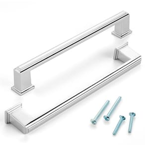 [Medidas] Centros dos furos: 6-1/4 polegadas (160 mm); Comprimento total: 7-1/16 polegadas (179 mm); Largura: 11/16 polegadas (17 mm); Altura: 1-3/16 polegadas (30 mm). [Fácil instalação] Cada puxador vem com dois conjuntos de parafusos que se encaixam em portas de armário comuns e gavetas para facilitar a instalação. [Design exclusivo] Escolhido para uma sensação tátil e acabamento superior, esta alça oferece uma aderência suave e confortável, bem como atração visual impactante. [Ampla compatibilidade] Esta alça é adequada para várias decorações e dará à sua casa um toque muito elegante, moderno e bonito. [Aviso antes da compra] Antes de fazer um pedido, meça os centros dos orifícios da tração atual. Verifique se o comprimento total deste puxador é adequado para o tamanho dos seus armários. - Material e cor: Feito de liga de zinco em cromo polido, durável e à prova de ferrugem. - Tamanhos e parafusos: Centros dos furos: 6-1/10.2 cm, comprimento total: 7-1/40.6 cm. 2 tamanhos de parafusos (2,5 cm e 1-1/5.1 cm) anexados para caber na porta do armário e gaveta. - Embalagem segura: cada puxador é embalado com cuidado para evitar arranhões ou danos; os clientes receberão os produtos em boas condições. - Serviço pós-venda sem preocupações: Qualquer dúvida ou problema com os produtos, com nossa equipe de pós-venda para suporte e serviço completo. - Amplas aplicações: Elegante e funcional, decoração perfeita para armário de cozinha, gaveta de mesa, cômoda, banheiro, porta de móveis, penteadeira, armário, quarto, guarda-roupa, armário, armário, baú, estante, cabana, aparador, etc.