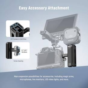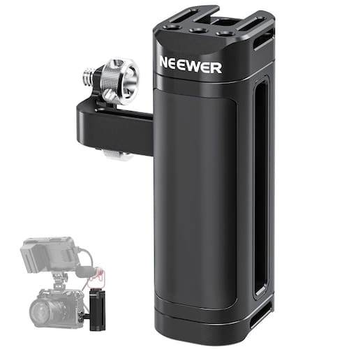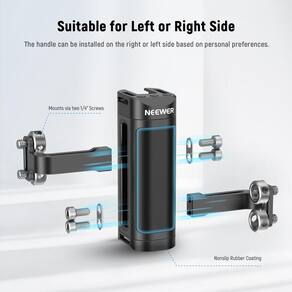 NEEWER Alça lateral compatível com gaiola de câmera SmallRig NEEWER, equipamento leve com parafusos duplos de 1/10.2 cm (espaçamento de 18 mm-20 mm), roscas de 1/10.2 cm, sapata fria, ajustável para - ?Alça lateral universal ultraleve? Este acessório de câmera compacto e leve (170 g) se fixa à gaiola da sua câmera ou equipamento de vídeo por meio de dois parafusos de polegar de 1/10.2 cm. Com espaçamento de parafuso ajustável de 18 a 20 mm, é compatível com gaiolas SmallRig e vários compartimentos de câmera NEEWER (CA020 CA019 CA014 CA011 CA002) e ajuda você a estabilizar uma câmera DSLR ou digital sem espelho de até 15 kg (não compatível com Tilta) - Posição vertical ajustável: a alça lateral pode deslizar verticalmente para obter a posição portátil ideal. Uma chave hexagonal em forma de L armazenada magneticamente dentro da alça permite que você afrouxe e aperte os parafusos sem esforço - ?Adequado para mão esquerda/direita? Projetado para operação com a mão esquerda e direita, o conector da alça pode ser destacado e instalado em ambos os lados do compartimento da câmera. Também inclui um compartimento para cordão para prevenção de quedas (laynard não incluído). - ?Acessório fácil? Os orifícios de rosca de 0,6 cm na parte superior e inferior podem conectar braços mágicos, suportes de cabeça esférica e outros pequenos acessórios ou equipamentos. E um suporte de sapata fria pode conectar uma luz LED, microfone ou monitor para melhorar a qualidade da fotografia e videografia da câmera, como filmagem, gravação de vídeo TikTok do YouTube, transmissão ao vivo, etc. - ?Estrutura ergonômica? Feito de ABS premium, PC e liga de alumínio, este equipamento fotográfico para câmera é resistente, mas leve para fotos ao ar livre. As almofadas de borracha antiderrapantes criam uma aderência confortável e firme para gravar vídeos enquanto estiver em movimento